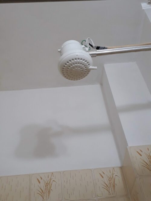 Warm dus, niet te veel aan denken en gewoon veel water drinken, dat is de tactiek. Af en toe een duik in het zwembad nemen of een goede koude douche (scheelt weer dat die gekke douchekop dan geen water hoeft te verwarmen) en vooral ook wél lekker gaan sporten. Deze week weer drie keer geweest! (Voor een vage foto van hoe het er daar uit ziet:)