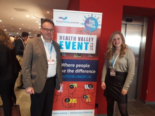 Op de 10e editie van het HealthValley evenement te Nijmegen, was BonPhysics B.V. ook aanwezig. Wij waren uitgenodigd om de presentatie van ParkinsonGaming bij te wonen. Lianne werkt al sinds 2016 samen met twee studenten van de Radboud Universiteit aan de ontwikkeling van een game voor mensen met Parkinson. Victor is sinds 2017 betrokken bij het programmeren van hun ideeën en daarmee het realiseren van een kinect game voor mensen met Parkinson. De mede studenten uit Liannes team hebben de game gepresenteerd volgens het PechaKucha format.